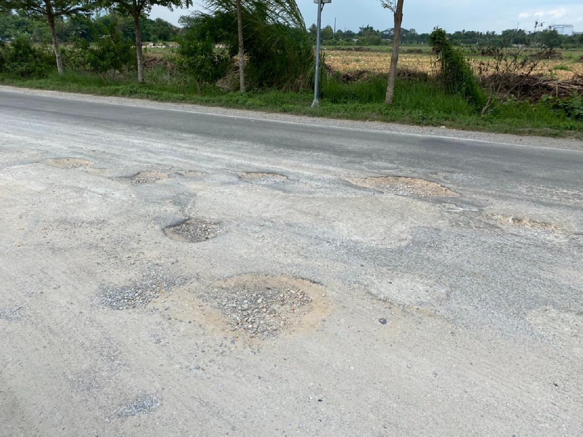 กองช่างดำเนินการแก้ไขปัญหาถนนเส้นทางบ้านท่าต้นแฟนหมู่ที่3 มุ่งหน้า ต.ป่าซาง โดยการนำยางมะตอยมาซ่อมแซมถนน